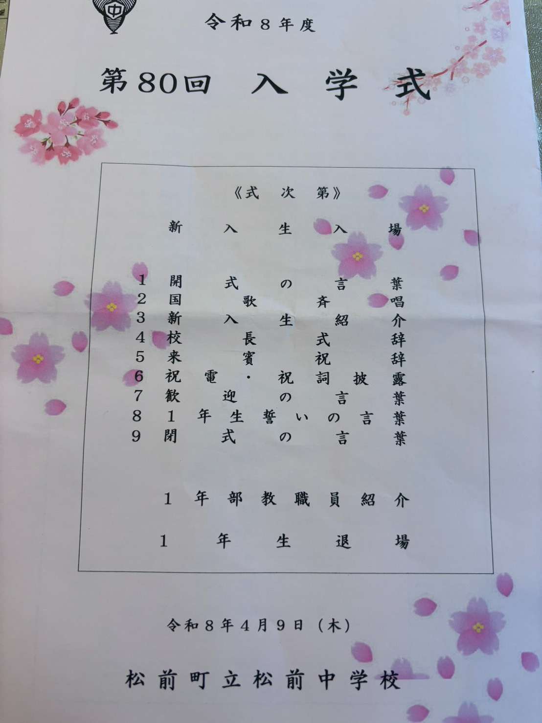 そんな天気が不安定な昨日、中学校の入学式に行ってきました。